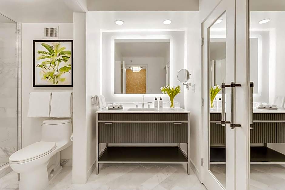 This club-level room includes free access to the 24-hour gym and access to the club lounge with breakfast and drinks for up to 2 guests per room. A marble bathroom, flat-screen TV, and coffee-making facilities are provided as well.